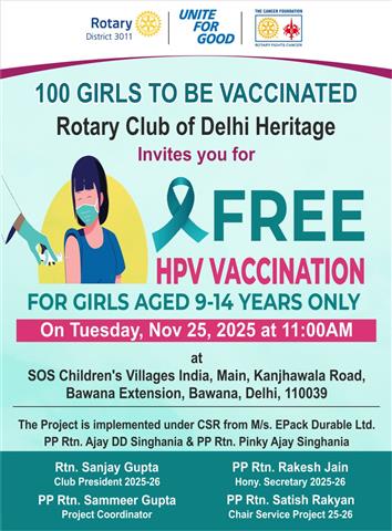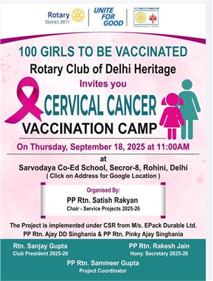 Rotary Club of Delhi Heritage today organized a Cervical Cancer Vac. . .